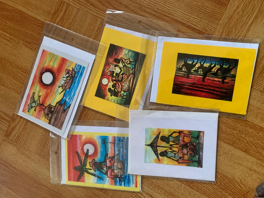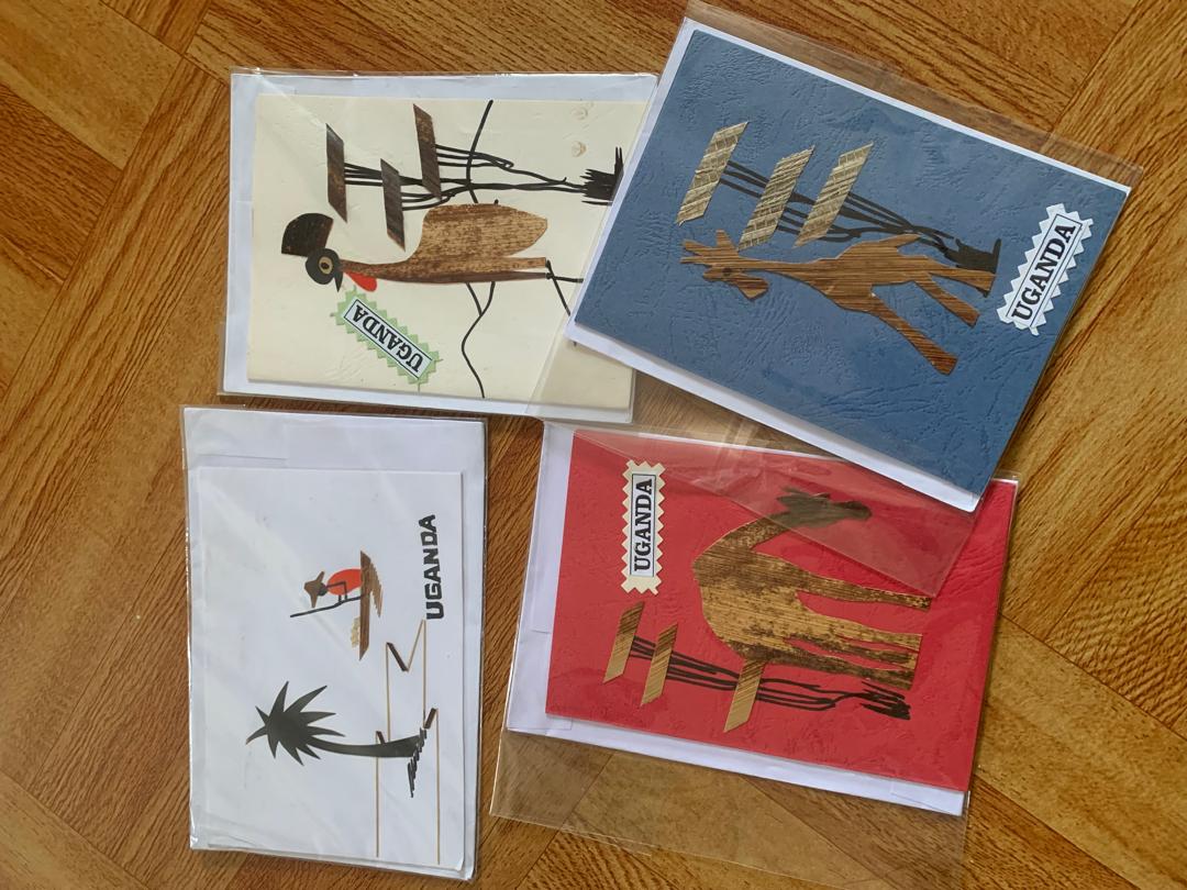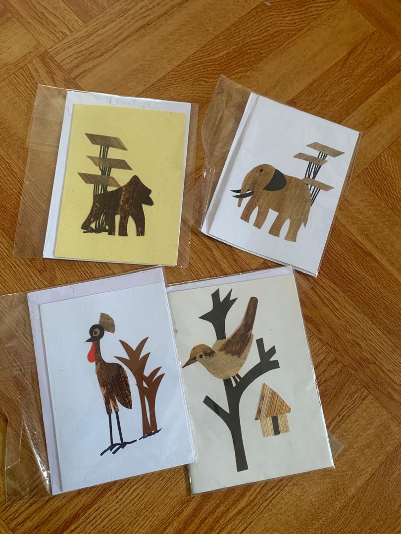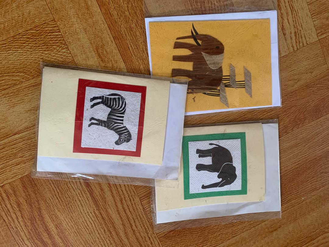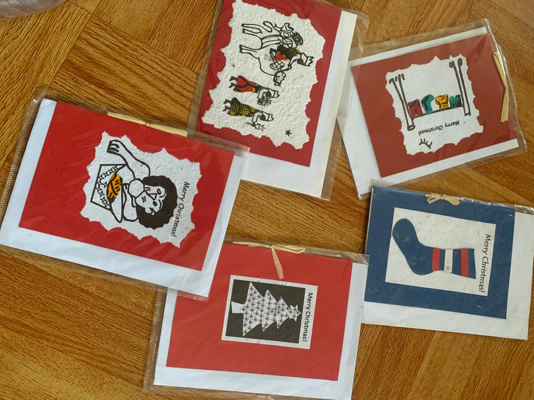 All seasonal and post cards with simple, yet inspiring designs produced using recycled waste papers, plants, fabric, bark cloth among other materials.